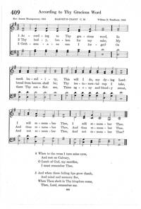 Author: Rev. James Montgomery Hymnal: Psalter Hymnal (Red) #409 (1934) Meter: 8.6.8.6 Lyrics: 1 According to Thy gracious word,