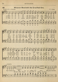 Author: E. A. HoffmanHymnal: The Canadian Hymnal #91 (1889)First Line: Whoever receiveth the Crucified OneLanguages: EnglishTune Title: [Whoever receiveth the Crucified One]