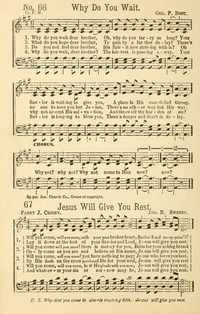 Author: Fanny J. Crosby Hymnal: Songs of Joy and Gladness with Supplement #95 (1889) First Line: Will you come, will you come, with your poor broken heart Refrain First Line: Oh, happy rest, sweet, happy rest! Languages: English Tune Title: [Will you come, will you come, with your poor broken heart]