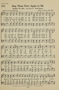 Author: Philip P. Bliss, 1838-1876Hymnal: New Baptist Hymnal #314 (1926)First Line: Sing them over again to meLanguages: EnglishTune Title: WORDS OF LIFE