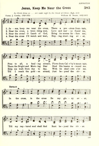 Author: F. J. CrosbyHymnal: Northfield Hymnal No. 3 #356 (1918)First Line: Jesus, keep me near the CrossRefrain First Line: In the CrossTune Title: [Jesus, keep me near the cross]
