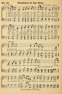 Author: E. E. HewittHymnal: The Young People's Hymnal #11 (1897)First Line: There's sunshine in my soul todayRefrain First Line: O there's sunshine, blessed sunshineLanguages: EnglishTune Title: [There's sunshine in my soul today]