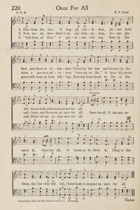 Author: P. P. B. Hymnal: New Songs for Service #250 (1929) First Line: Free from the law, O happy condition Refrain First Line: Once for all, O sinner, receive it Topics: Rejoicing Languages: English Tune Title: [Free from the law, O happy condition]