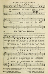 Hymnal: Conference Hymnal #18 (1917)First Line: It was good for our mothersRefrain First Line: 'Tis the old time religionScripture: Hebrews 6:18-19Languages: EnglishTune Title: [It was good for our mothers]