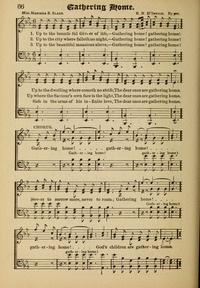 Author: Miss Mariana B. Slade Hymnal: Living Hymns #66 (1890) First Line: Up to the bountiful Giver of life Refrain First Line: Gathering home! gathering home! Lyrics: 1 Up to the beautiful Giver of life,--