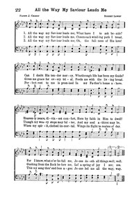 Author: Fanny J. Crosby Hymnal: Hymns of Zion #21 (1958) First Line: All the way my Saviour leads me Languages: English Tune Title: [All the way my Saviour leads me]