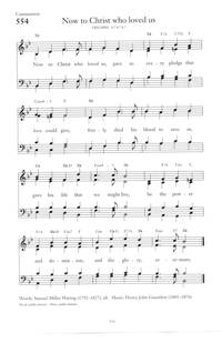 Author: Samuel Miller Waring, 1792-1827 Hymnal: The Book of Praise #554 (1997) Meter: 8.7.8.7.8.7 First Line: Now to Christ who loved us, gave us Lyrics: Now to Christ who loved us,