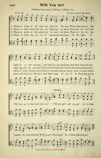 Author: W. S. M.Hymnal: Songs of Redemption and Praise. Rev. #120 (1906)Scripture: Ruth 1:16First Line: There's a beautiful country just o'er the wayRefrain First Line: Will you go? will you go?Languages: EnglishTune Title: [There's a beautiful country just o'er the way]