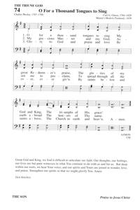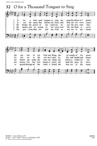 Author: Charles Wesley Hymnal: With Heart and Voice #132 (1989) Meter: 8.6.8.6 Lyrics: 1 Oh, for a thousand tongues to sing