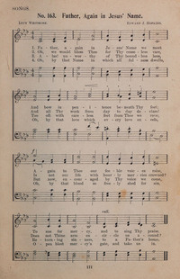 Author: Lucy WhitmoreHymnal: Christian Hymns #163 (1908)First Line: Father, again in Jesus' name we meetLanguages: EnglishTune Title: [Father, again in Jesus' name we meet]