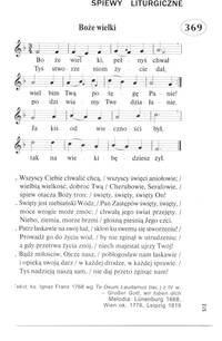 Author: ks. Ignaz Franz Hymnal: Śpiewnik Ewangelicki #369 (2002) First Line: Boźe wielki, pełnyś chwał Lyrics: 1 Boże wielki, peĺnyś chwał