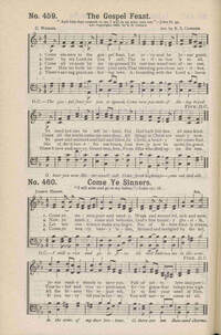 Author: C. Wesley Hymnal: Bells of Heaven #459 (1903) First Line: Come sinners to the gospel feast Languages: English Tune Title: [Come sinners to the gospel feast]