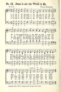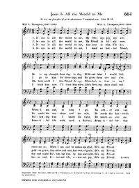 Author: Will L. Thompson, 1847-1909 Hymnal: One Lord, One Faith, One Baptism #485 (2018) Meter: 8.6.8.6.8.8.8.3 Lyrics: 1 Jesus is all the world to me,