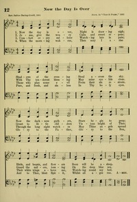 Author: Rev. Sabine Baring-GouldHymnal: Alleluia #12 (1916)Topics: Afternoon and EveningLanguages: EnglishTune Title: [Now the day is over, Night is drawing nigh]