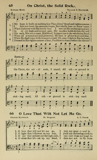 Author: Edward Mote Hymnal: The Mission Hymnal. (Enlarged Edition) #52 (1914) First Line: My hope is built on nothing less Languages: English Tune Title: THE SOLID ROCK