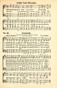 Author: John R. ClementsHymnal: Great Songs of the Church #596 (1975)First Line: Somebody did a golden deedRefrain First Line: Was that somebody you?Tune Title: [Somebody did a golden deed]