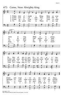 Author: Anon. Hymnal: Journeysongs (2nd ed.) #471 (2003) Meter: 6.6.4.6.6.6.4 Lyrics: 1 Come now, Almighty King,