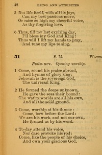 Author: WattsHymnal: The Hymn Book of the African Methodist Episcopal Church #51 (1877)Meter: 6.6.8.6Topics: Being and Attributes of GodFirst Line: Come, sound his praise abroadScripture: Psalm 95Languages: English