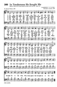 Author: W. Spencer Walton Hymnal: Hymns for the Living Church #300 (1974) Meter: 7.6.7.6.8.8 with refrain Topics: Christ Passion; Christ Sacrifice; Christ Shepherd; Christ Suffering; Testimony, Hymns of; Witness, Hymns of Refrain First Line: O the love that sought me! Lyrics: 1 In tenderness He sought me,