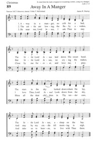 Hymnal: Sing With Me #87 (2006) Meter: 11.11.11.11 First Line: Away in a manger, no crib for a bed Lyrics: 1 Away in a manger, no crib for a bed,