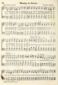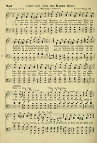 Author: Mrs. Frank A. Breck Hymnal: Hymns of the Kingdom #89 (1905) First Line: Come and join the happy band Refrain First Line: There is blessing, truest blessing Lyrics: 1 Come and join the happy band,