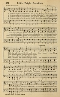 Author: Palmer HartsoughHymnal: Joy and Praise #131 (1908)First Line: Is there aught so lovely as the sunny dayRefrain First Line: Sunshine, sunshine, making all so brightLanguages: EnglishTune Title: [Is there aught so lovely as the sunny day]