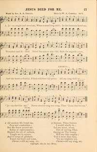 Author: Rev. A. A. Graley Hymnal: Gospel Praise Book. #27 (1885) First Line: Jesus sought and saved me Refrain First Line: All my songs shall be Lyrics: 1 Jesus sought and saved me,