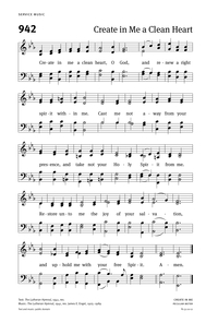 Hymnal: Evangelical Lutheran Worship #185 (2006) Hymnal Title: Evangelical Lutheran Worship First Line: Create in me a clean heart, O God Lyrics: Create in me a clean heart, O God,