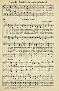 Author: Haldor Lillenas, 1885-1959 Hymnal: Revival Hymns and Choruses #256 (1970) Hymnal Title: Revival Hymns and Choruses First Line: The Bible stands like a rock undaunted Refrain First Line: The Bible stands tho the hills may tumble Lyrics: 1 The Bible stands like a rock undaunted