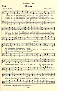 Author: Rev. D. H. KingHymnal: The Baptist Standard Hymnal #626 (1924)First Line: Can I ever forget mother's beautiful faceRefrain First Line: No, no I can never forget that dear nameTopics: Special Mother's DayLanguages: EnglishTune Title: [Can I ever forget mother's beautiful face]