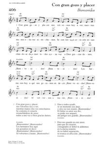 Author: Enrique S. Turrall Hymnal: Libro de Liturgia y Cántico #406 (1998) First Line: Con gran gozo y placer Refrain First Line: ¡Bienvenidos! ¡Bienvenidos! Lyrics: 1 Con gran gozo y placer nos volvemos hoy a ver; nuestras manos otra vez estrechamos. Se contenta el corazón ensanchándose de amor; todos a una voz a Dios gracias damos. Estribillo: ¡Bienvenidos! ¡Bienvenidos! Los hermanos hoy aquí nos gozamos en decir: ¡Bienvenidos! ¡Bienvenidos! Al volvernos a reunir, ¡Bienvenidos! 2 Dios a todos ayudó, ni un momento nos dejó, y otra vez nos reunió, ¡Bienvenidos! El Señor su amor nos dio, su poder nos amparó, del peligro nos guardó: ¡Bienvenidos! [Estribillo] 3 Dios nos guarde en este amor, para que de corazón, consagrados al Señor, le alabemos: en la eterna reunión do no habrá separación, ni tristeza ni aflicción: ¡Bienvenidos! [Estribillo] Topics: Al Congregarse Languages: Spanish Tune Title: [Con gran gozo y placer]