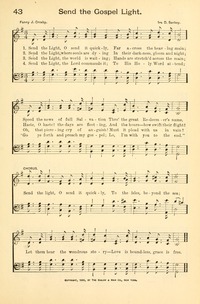 Author: Fanny J. Crosby Hymnal: Hallowed Hymns, New and Old #43 (1908) First Line: Send the Light, O send it quickly Refrain First Line: Send the light, O send it quickly Lyrics: 1 Send the Light, O send it quickly,