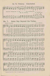 Author: Jennie Wilson Hymnal: Song Crown #7 (1912) First Line: Some day beyond the silent valley Refrain First Line: Some blessed day beyond the valley Languages: English Tune Title: [Some day beyond the silent valley]