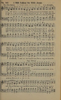 Author: Mrs. Clint SheltonHymnal: The Song-Land Way #141 (1925)Refrain First Line: I will follow on with Jesus all the wayLanguages: EnglishTune Title: [I will follow on with Jesus]