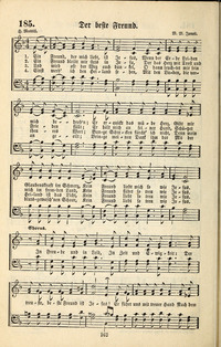 Author: H. MattillHymnal: Silberklänge #185 (1899)First Line: Ein Freund, der mich liebt, ist JesusRefrain First Line: In Freude und in LeidLanguages: GermanTune Title: [Ein Freund, der mich liebt, ist Jesus]