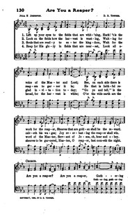 Author: Julia H. Johnston Hymnal: The Voice of Thanksgiving #130 (1913) First Line: Lift up your eyes to the fields that are whit’ning Refrain First Line: Are you a reaper Lyrics: 1 Lift up your eyes to the fields that are whit’ning;