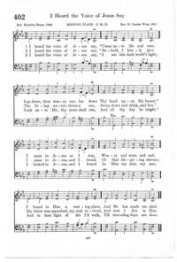 Meter: 8.6.8.6 D Appears in 8 hymnals Composer and/or Arranger: Henry Vander Werp, 1846-1918 Incipit: 12344 32132 11715 Used With Text: I Heard the Voice of Jesus Say