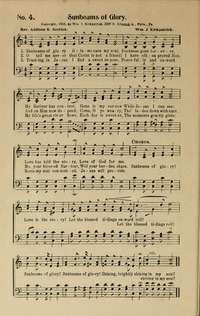 Author: Rev. Addison K. Scotten Hymnal: Songs of Help #4 (1917) First Line: Sunbeams of glory illuminate my soul Refrain First Line: Sunbeams of glory! Love is the story! Lyrics: 1 Sunbeams of glory illuminate my soul,