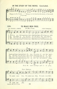 Author: Mrs. Frank A. BreckHymnal: New Anti-Saloon Songs #43 (1905)First Line: We're a joyful temp'rance bandLanguages: EnglishTune Title: [We're a joyful temp'rance band]