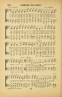 Display Title: Counting for ChristFirst Line: Are you counting for the Master ev'ry day?Tune Title: [Are you counting for the Master ev'ry day?]Author: G. W. HaskellDate: 1897