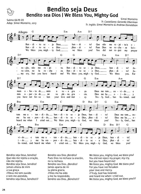 Simei Monteiro is a Brazilian poet, composer, translator, author and editor. She was Born in Belém, PA, Brazil in 1943. Her songs and translations appear in several hymn books and collections of sacred songs in Brazil, Latin America, USA, Europe, and Asia.