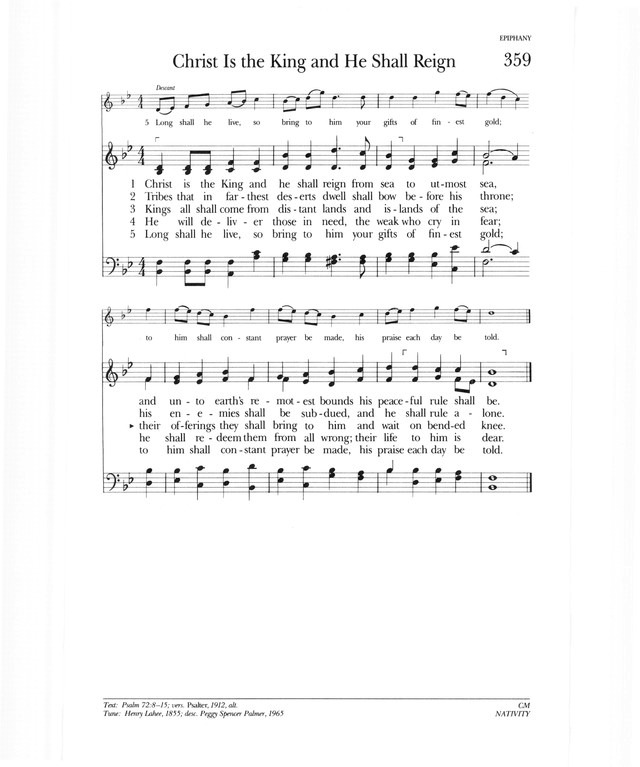A paraphrase of Psalm 72:8-15, this Epiphany text comes from the 1912 Psalter. (For general comments on this psalm, see PHH 72.)