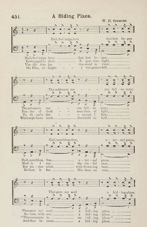 Hail, sovereign love, that first began. J. Brewer. [Christ the Hiding Place.] First appeared in the Gospel Magazine, Oct. 1776, in 9 stanzas of 4 lines, and signed "Sylvestris." It was given in full in J. Middleton's Hymns, 1793, No. 279; in Williams and Boden, 1801, No. 226; in undated editions of the Lady Huntingdon Collection, No. 328, and others. Rippon, in the 27th edition of his Selection, 1827, No. 172, Pt. ii., set the example of abbreviation, and this example has been followed in almost all modern collections in Great Britain and America. In addition to abbreviated text there are also three altered forms of the hymn:—