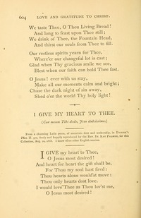 I give my heart to Thee, by Ray Palmer. Concerning this translation Dr. Schaff says in his Christ in Song, 1869-70, that the Latin text was freely and happily reproduced by the Rev. Dr. Ray Palmer, for this collection, Aug. 20, 1868. I know of no other English version." Dr Littledale's translation, however, was published some four years before. Dr. Palmer's translation was repeated, with alterations, in the 1869 Supplement to the New Congregational Hymn Book.