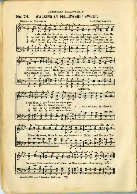 Display Title: Walking In Fellowship SweetFirst Line: I walk with the Saviour in fellowship sweetTune Title: [I walk with the Saviour in fellowship sweet]Author: Elisha A. HoffmanDate: 1900