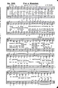 Display Title: I've a MansionFirst Line: I've a mansion built in heaven 'mid the joys untoldTune Title: [I've a mansion built in heaven 'mid the joys untold]Author: J. W. F.Date: 1921