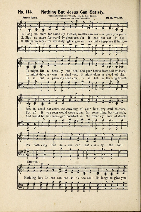 Display Title: Nothing But Jesus Can Satisfy First Line: Long no more for earthly riches, wealth can never give you peace Tune Title: [Long no more for earthly riches, wealth can never give you peace] Author: James Rowe Date: 1905