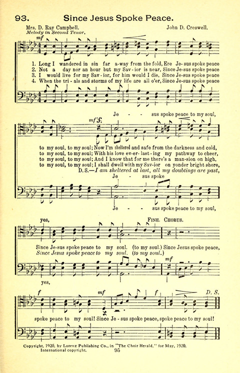 Display Title: Since Jesus Spoke Peace First Line: Lord I wandered in sin far away from the fold Tune Title: [Lord I wandered in sin far away from the fold] Author: Mrs. D. Ray Campbell Date: 1923
