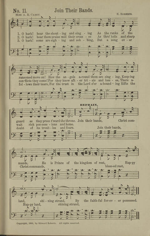 Display Title: Join Their BandsFirst Line: O hark! hear the shouting and singingTune Title: [O hark! hear the shouting and singing]Author: Miss A. R. CareyDate: 1903