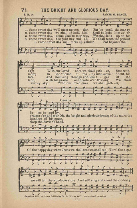 Display Title: The Bright and Glorious DayFirst Line: Some sweet day we'll meet up yonderTune Title: [Some sweet day we'll meet up yonder]Author: J. M. B.Date: 1913